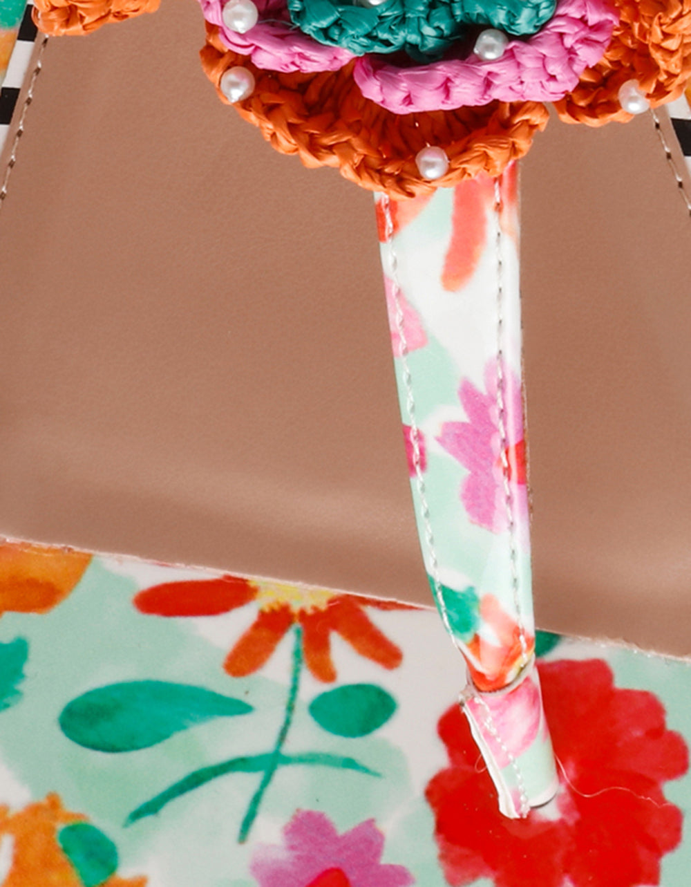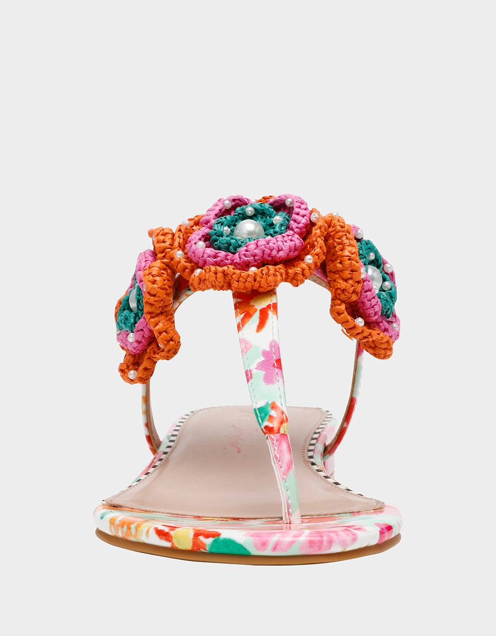 Slip on Betsey Johnson’s CINDII T-strap for an effortless look! The macrame flowers cascade across the front with a study buckle keeping your foot in place.