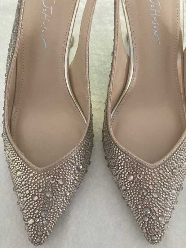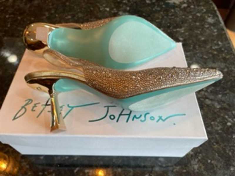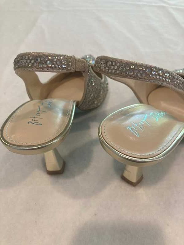 Slip into the shimmering CLARK?gold heels that are adorned with a luxurious??sling-back design. These heels will add a touch of sparkle to any outfit. allowing you to show off your look in style!