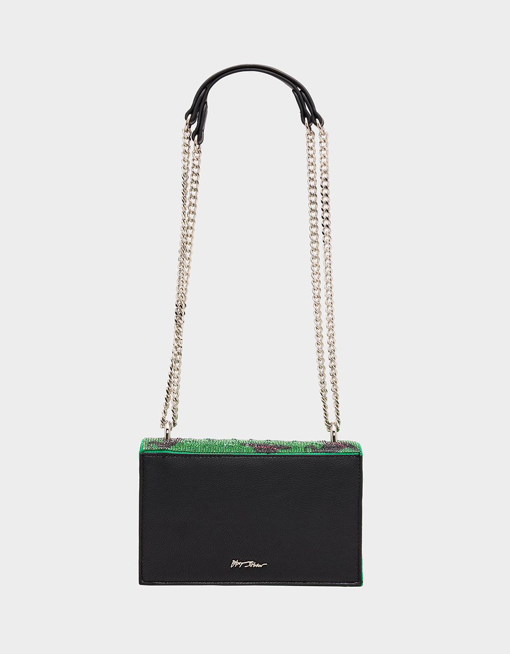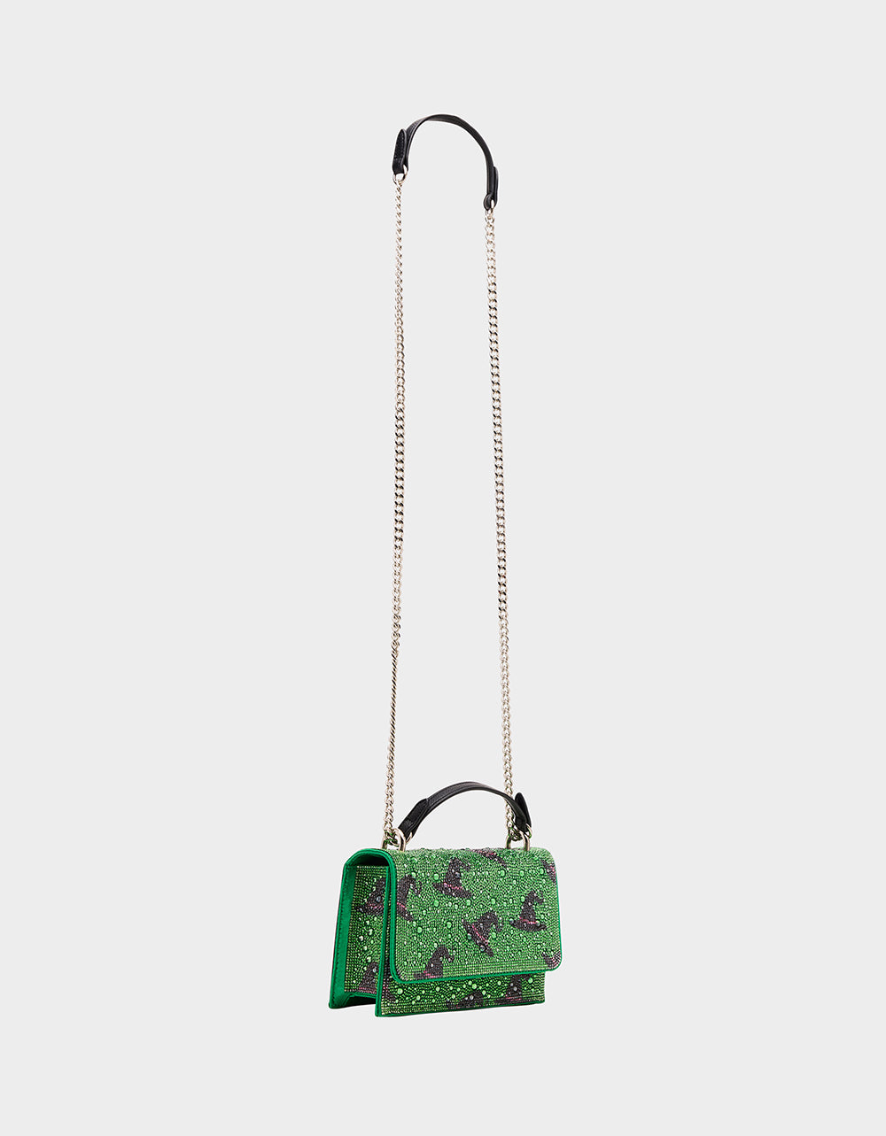 Add a sparkling twist to your look with this HATS OFF CONVERTIBLE rhinestone embellished . Featuring a playful hue and a chic chain strap. it’s perfect for carrying your essentials with a touch of edgy glamour. Whether day or night. this convertible bag brings fun and flair to any outfit.