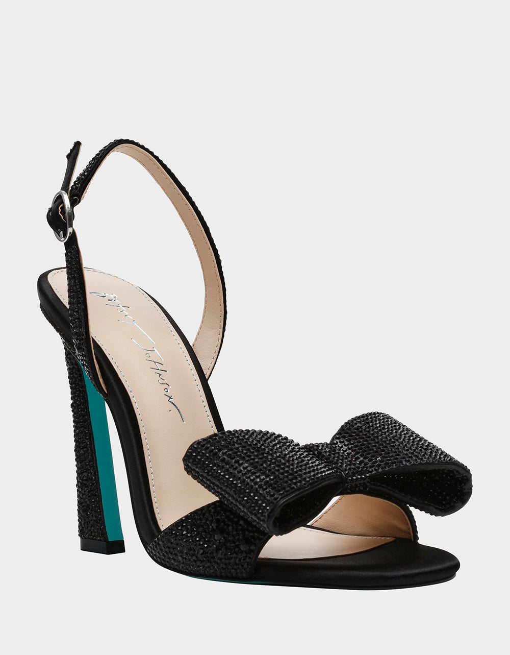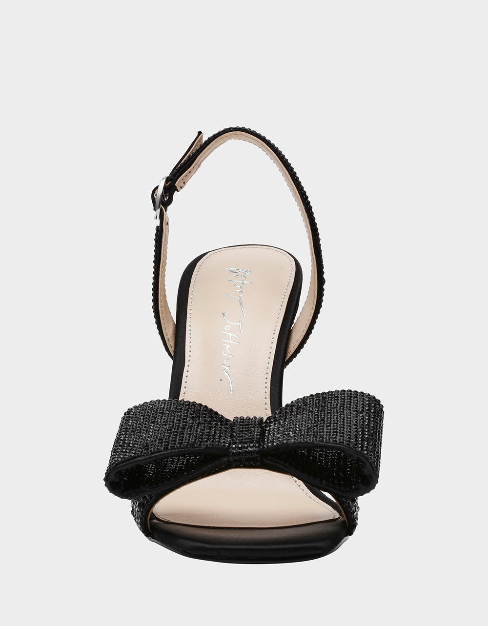 Meet JOEL: a head-turning slingback? that doesn’t lack in glitz! Completely covered in rhinestones with an oversized bow on the front. these slingback dress sandals will be your go-to for any evening event.?