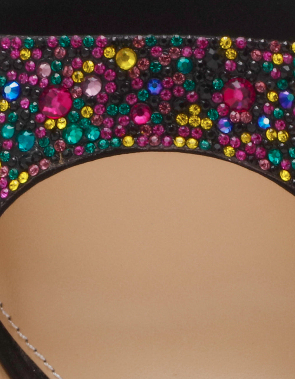 The sparkly KAMI block heel is a flirty open-toed sandal glistening all over with  embellishments. These short sparkly heels are ideal for any  occasion or a night out on the town. The sleek mid-low short kitten heels feature a comfortable and stable block heel with an adjustable ankle strap that will keep you dancing all night long.