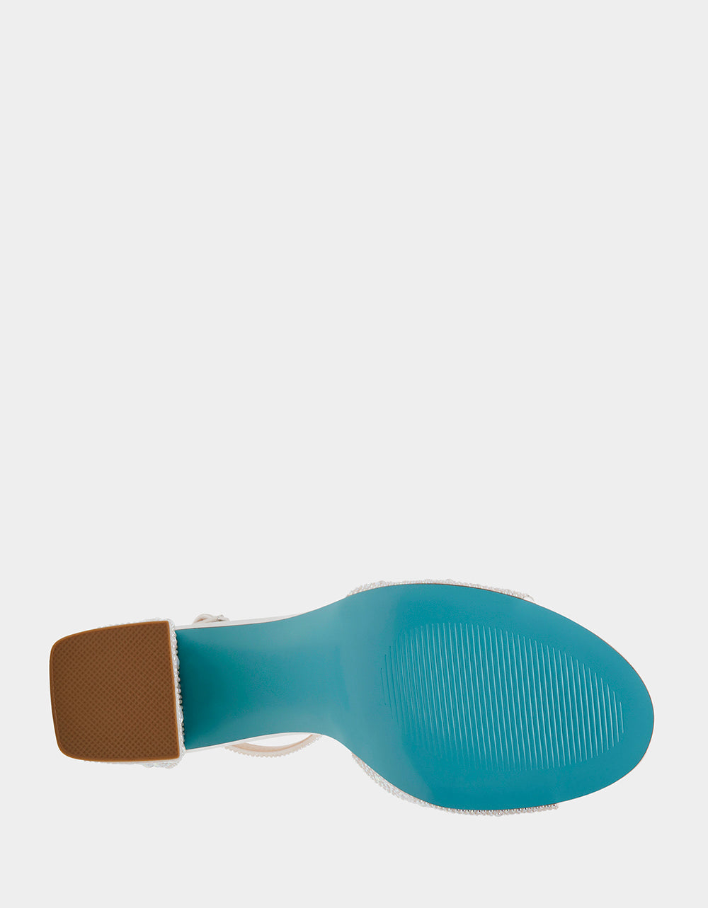 The sparkly KAMI block heel is a flirty open-toed sandal glistening all over with pearl embellishments. These short heels are ideal for any occasion or a night out on the town. The sleek mid-low short kitten heels feature a comfortable and stable block heel with an adjustable ankle strap that will keep you dancing all night long.
