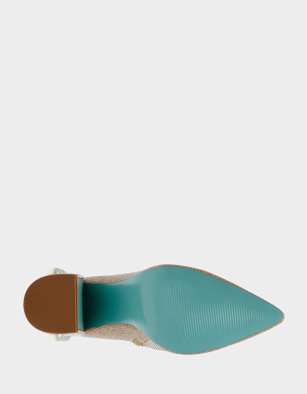 Prepare to make a statement with the KASEY GOLD . featuring a glitzy exterior and a pearl-encrusted heel for that added flair!