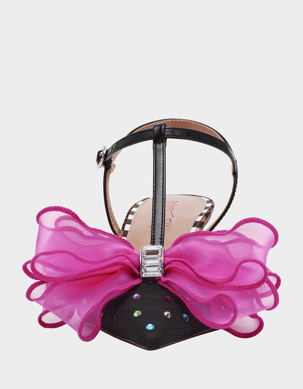 A trendy T-strap with an over-the-top tulle bow makes Betsey Johnson’s new LILLYAN kitten pump a show stopper! With a kitten heel and secure ankle strap. you’ll be wearing this unique heel all day long.