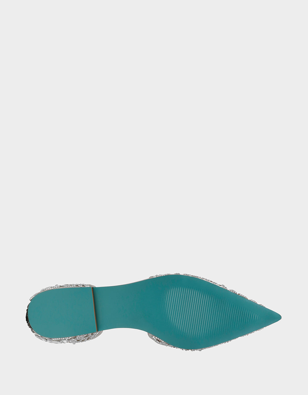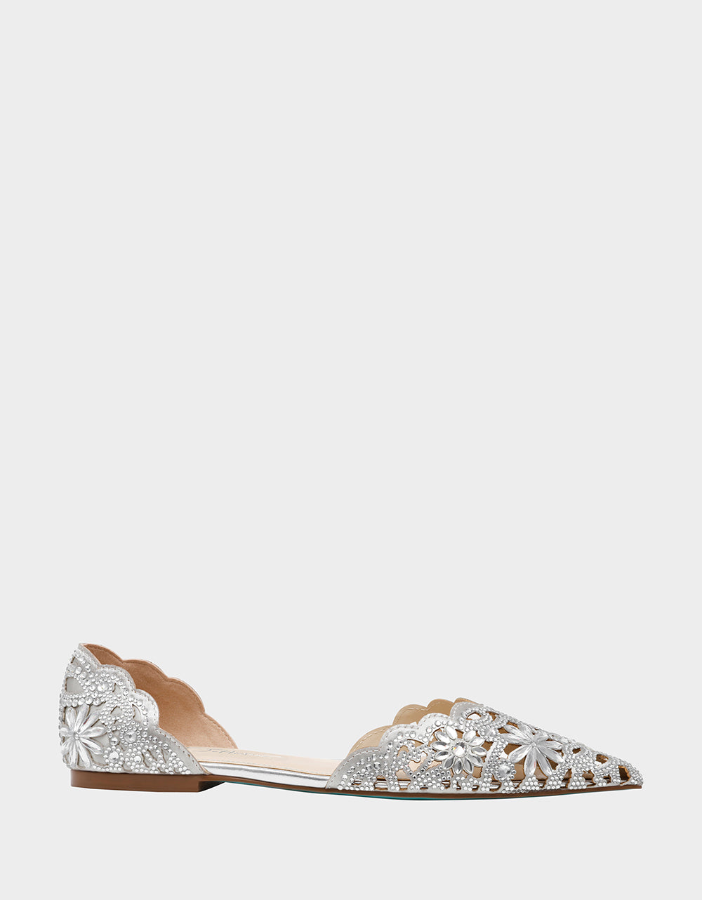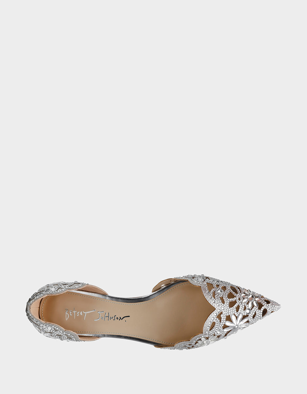 This ballet boasts a timeless silhouette. complete with intricate cut out details. a pointed toe. and a dazzling display of for added flair.