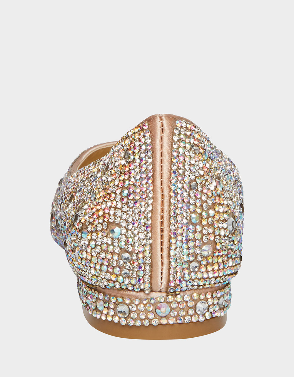 This classic rhinestone ballet silhouette features a pointed toe and is decked out in for embellishment.